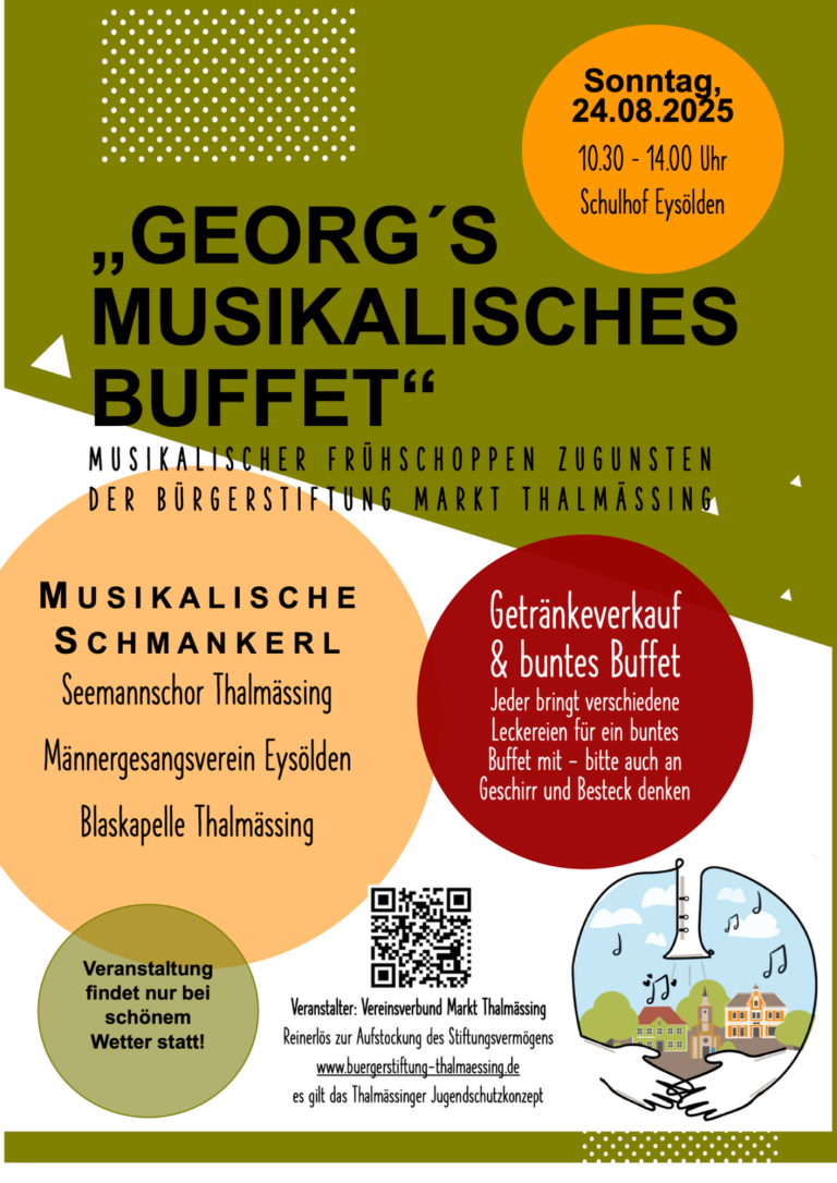 Mit „Georgs musikalischem Buffet“ haben wir eine Veranstaltung abgehalten, um die Bürgerstiftung bekannter zu machen, Spenden zu sammeln und Ideen für künftige Förderprojekte zu gewinnen. Die gute Resonanz mit circa 300 Besuchern hat gezeigt, das Interesse besteht und die Bürger Interesse an der Stiftung haben. Bereits umgesetzte Projekte wie Schwimmkurse oder Aromatherapie sollen künftig durch weitere Vorschläge aus der Bürgerschaft ergänzt werden. Zudem kamen durch Spenden an diesem Tag weitere 1000 € zusammen, um das Stiftungsvermögen zu erhöhen. Danke an der Stelle nochmals an alle Spender!